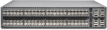 The QFX5130 line offers high-density, cost-optimized, 1-U, 400GbE and 100GbE fixed-configuration switches based on the Broadcom Trident 4 processor. It’s ideal for environments where cloud services are being added. With 10/25/40/100/400GbE interface options, the QFX5130 is an optimal choice for spine-and-leaf deployments in enterprise, service provider, and cloud provider environments.