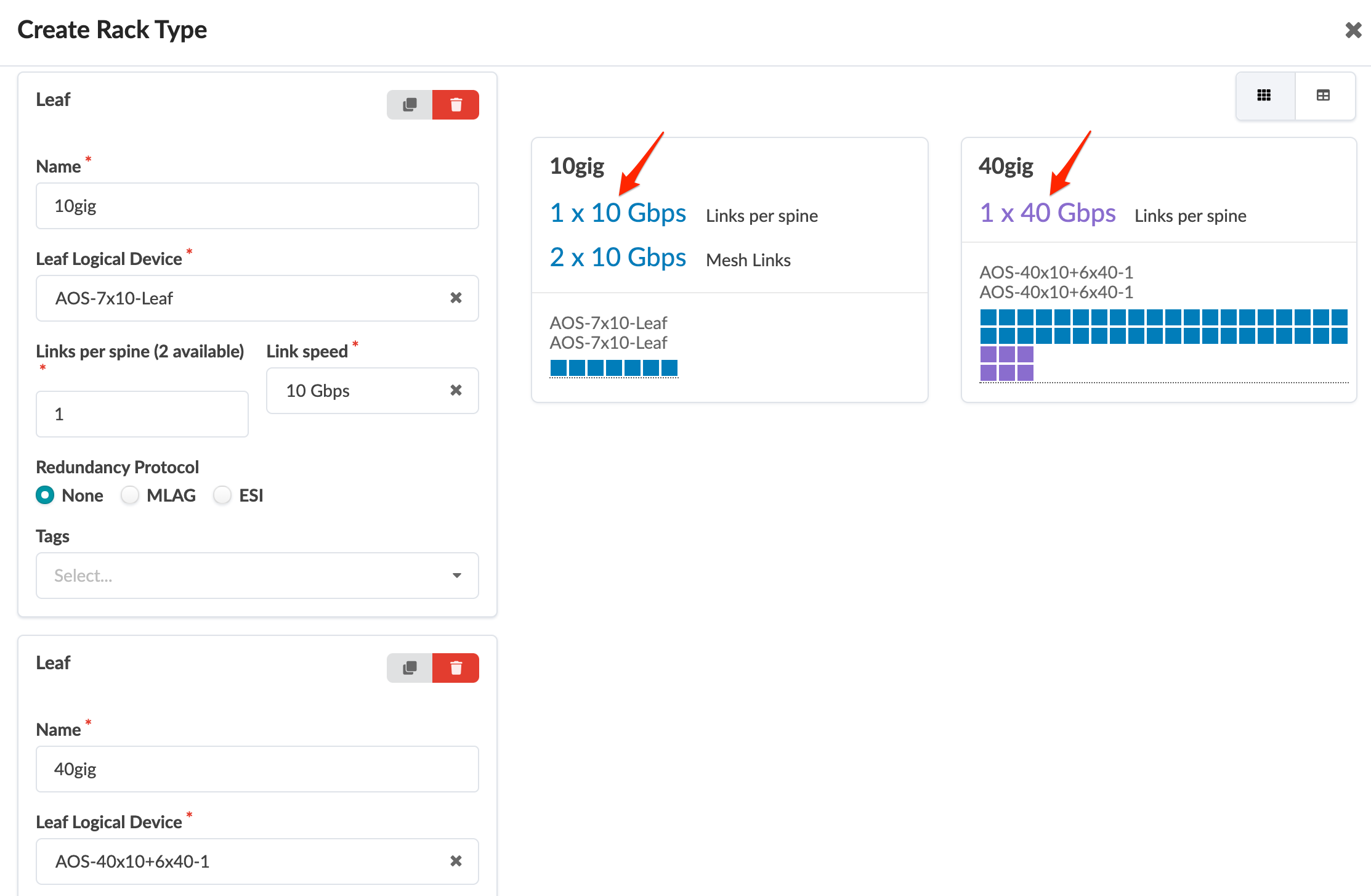 - As a Day 0 operation you can create a blueprint with one of the above templates; or as a Day 2 operation you can select a mixed speed rack type when adding a rack to an existing blueprint.