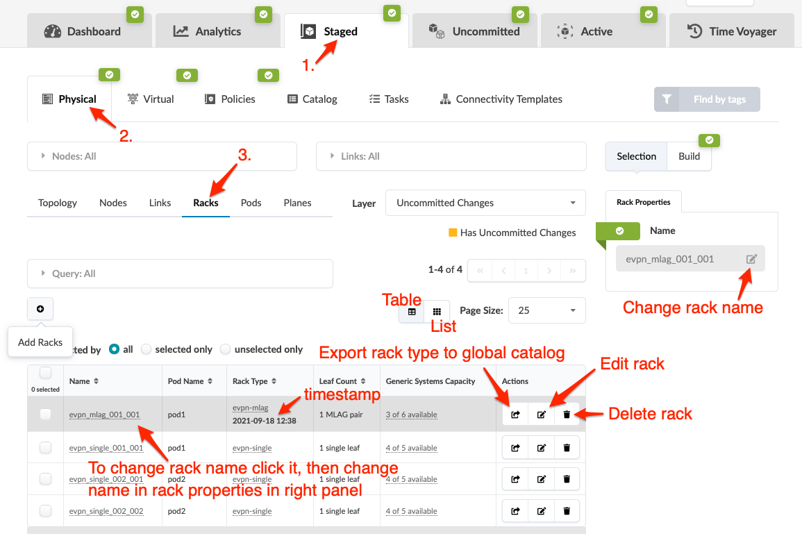 From the blueprint, navigate to Staged > Physical > Racks to