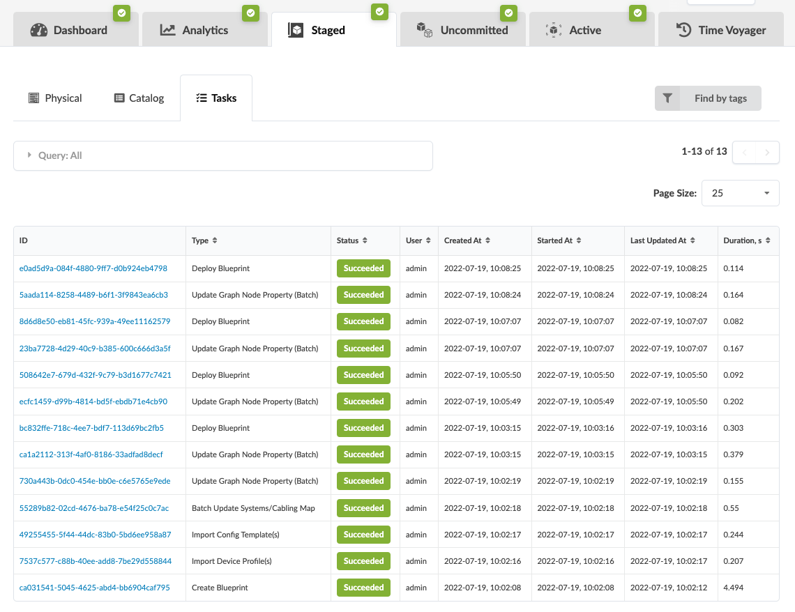 Tasks that haven been performed in blueprints appear in the Tasks tab. Blueprint task details