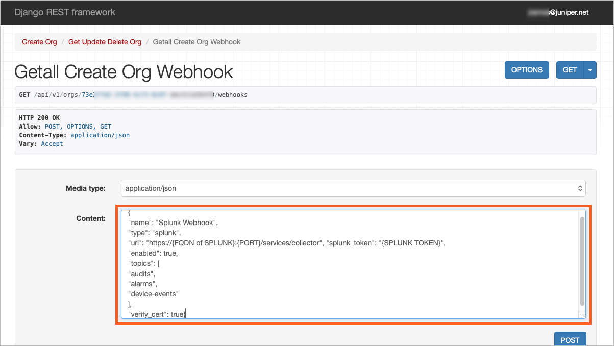 Follow these instructions to configure Splunk and to set up webhooks from Juniper Mist™ to your Splunk instance.