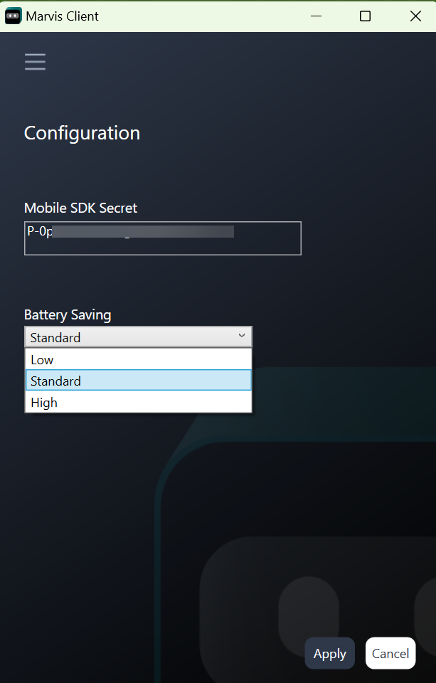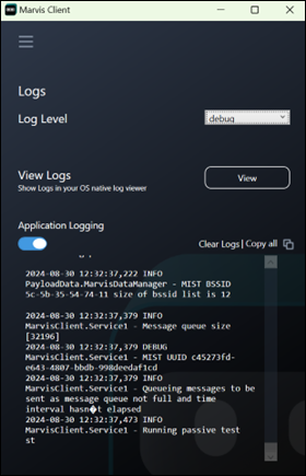 Note:On devices running Windows 11, version 24H2 and later, the Marvis client can obtain the BSSID of the wireless network only if location services are enabled. Disabling location services causes the Marvis client to switch to the Sleeping state.