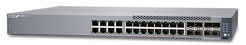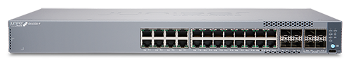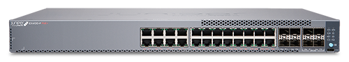 EX4100-F-24P/T: 24 PoE/não-PoE de 1GbE, 4 uplinks de 1/10GbE e 4 uplinks/empilhamento de 10GbE