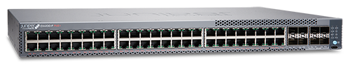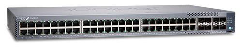 EX4100-F-48P/T: 48 PoE/não-PoE de 1GbE, 4 uplinks de 1/10GbE e 4 uplinks/empilhamento de 10GbE