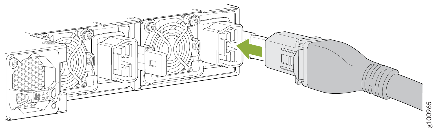 当您使用适合您地理位置的交流电源线将电源插入接地的交流电源插座时,交流供电的 PTX10001-36MR 获得了额外的接地。请参阅 PTX10001-36MR 电源系统。