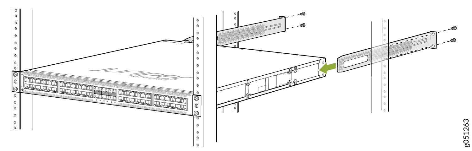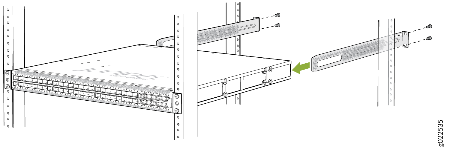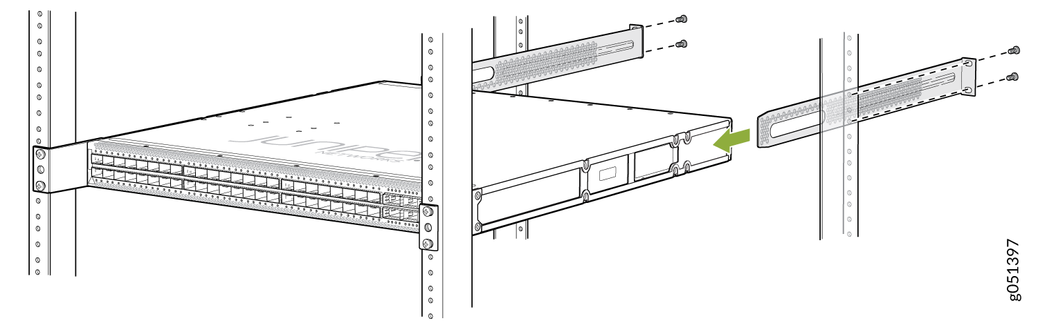 将 QFX5120-48YM 交换机安装在两柱机架上
