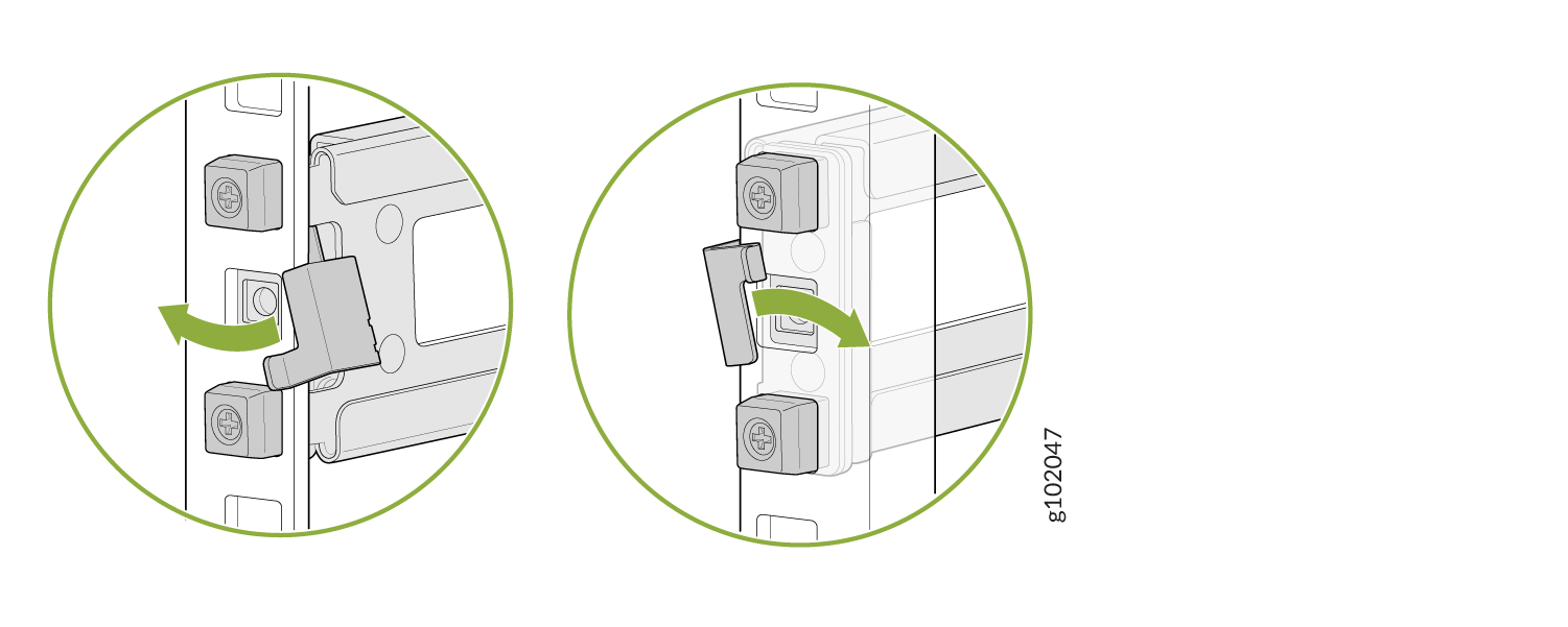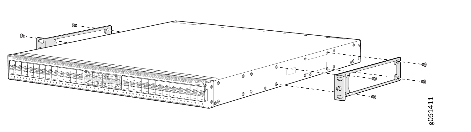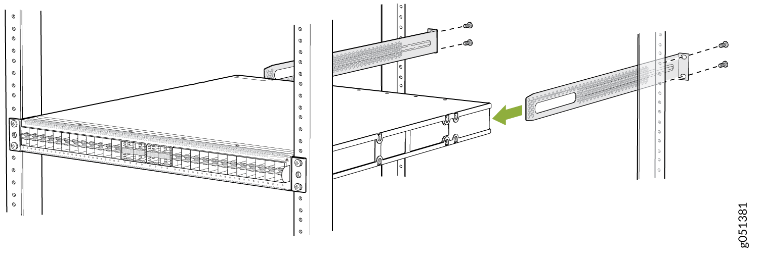 本主题介绍将 QFX5120-48T、QFX5120-48Y 和 QFX5120-48YM 交换机从四柱机架的前柱凹入位置安装的过程。如果要将交换机与四柱机架的前柱齐平安装,请参阅将 QFX5120-48T、QFX5120-48Y 或 QFX5120-48YM 交换机与机架或机柜的前柱齐平安装。如果要在双柱机架上安装 QFX5120-48YM 交换机,请参阅 在双柱机架上安装 QFX5120-48YM 交换机。