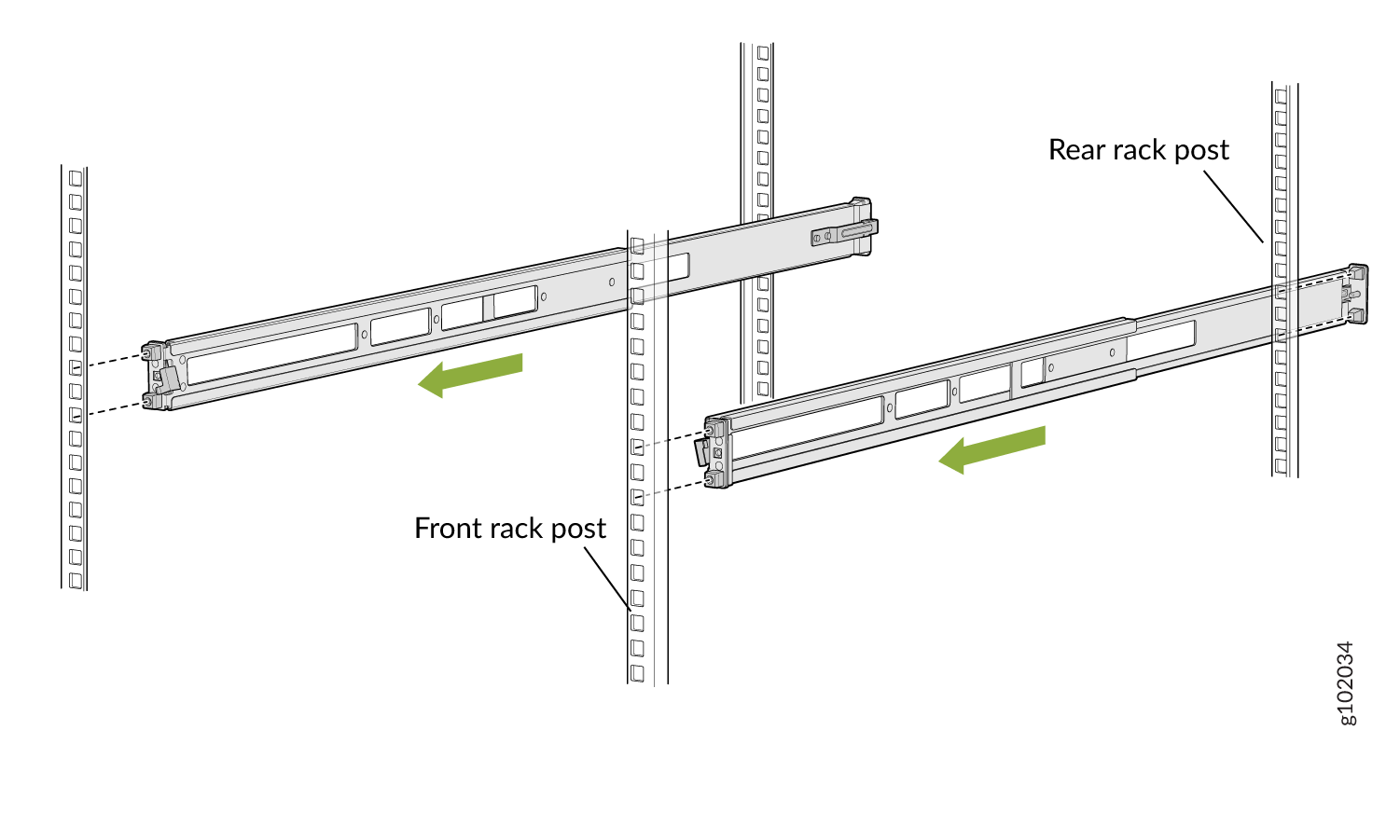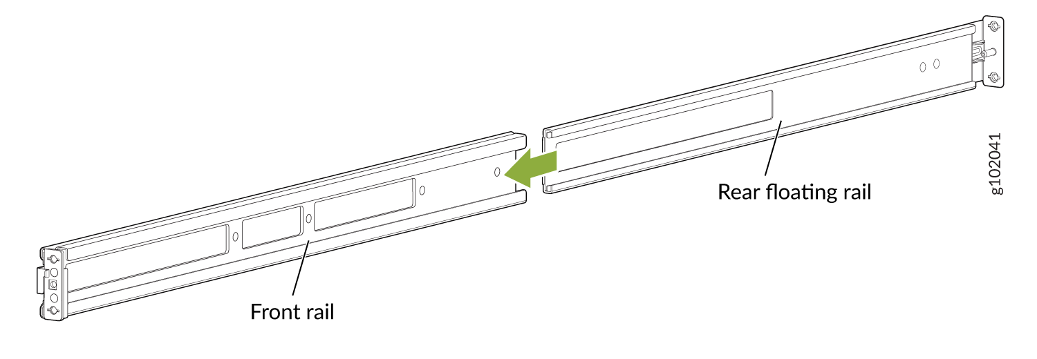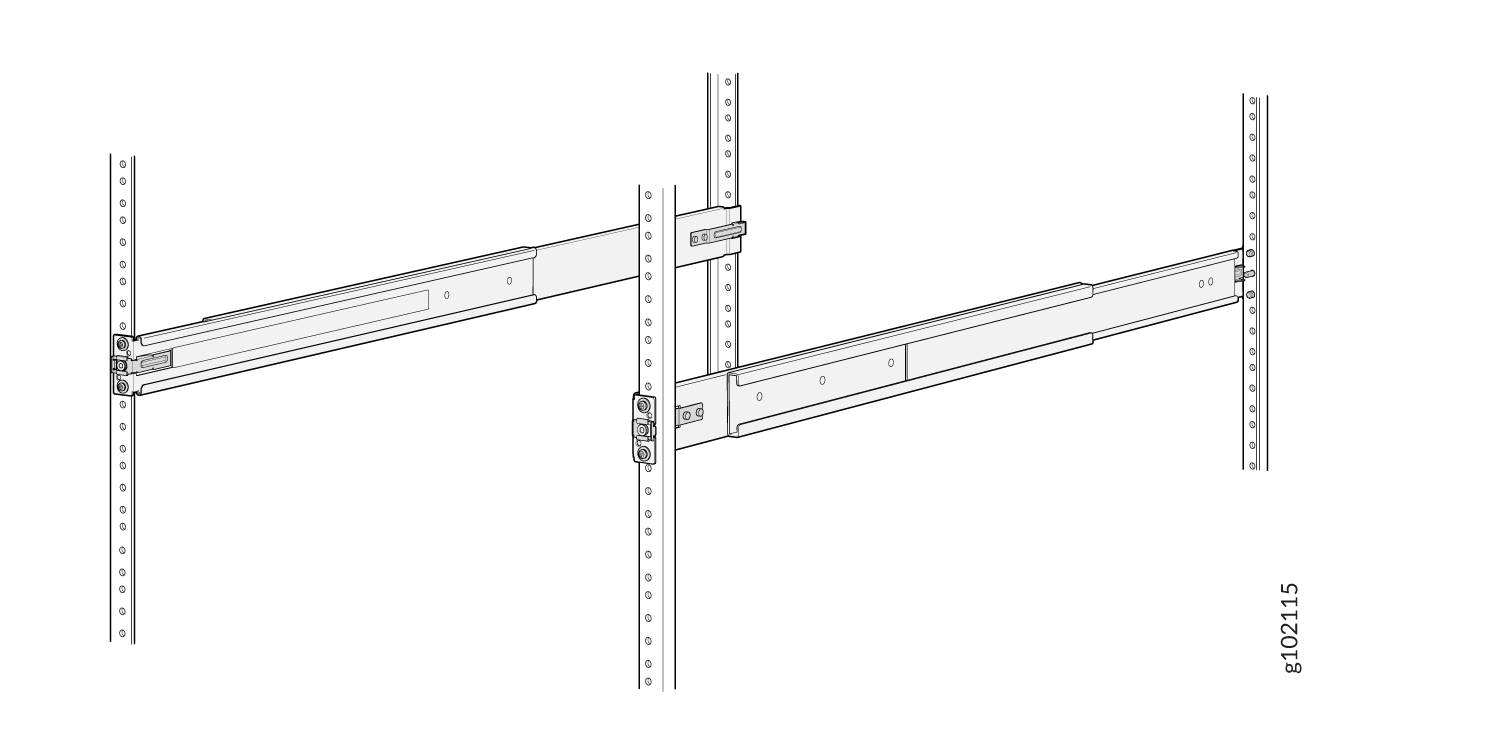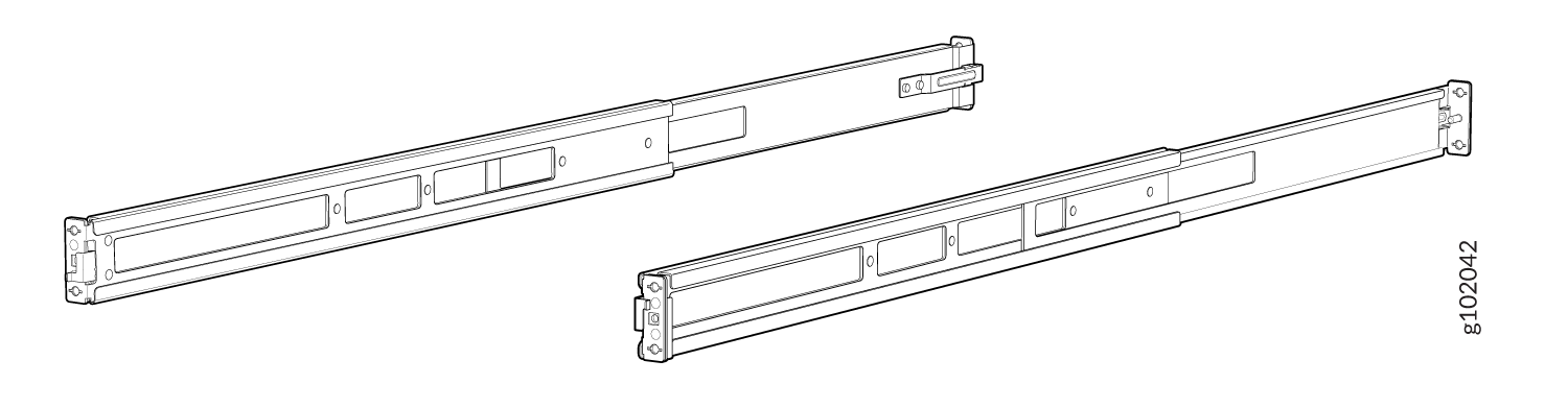 一对连接到机架柱的前后安装导轨 — 随机架安装套件提供