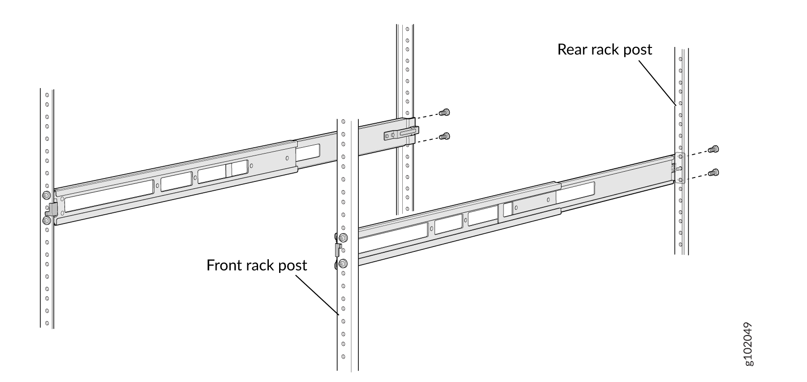 一对连接到机架柱的前后安装导轨