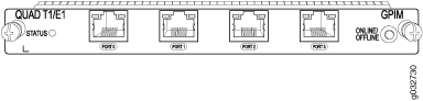 四通道 CT1/E1 GPIM 提供与 T1 或 E1 网络介质类型的物理连接,还执行 T1 或 E1 成帧和线速信令。