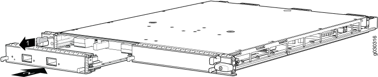 MICは、ファイアウォールの前面にインストールされたMPCに配置されています。MIC の重量は 0.9 kg(2 ポンド)未満です。