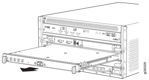- SRX5400 ファイアウォール SPC のインストール、SRX5600 ファイアウォール SPC のインストール、または SRX5800 ファイアウォール SPC のインストールの手順を使用して、電源がオフになったファイアウォールに新しい SPC3 または SPC3 をインストールします。