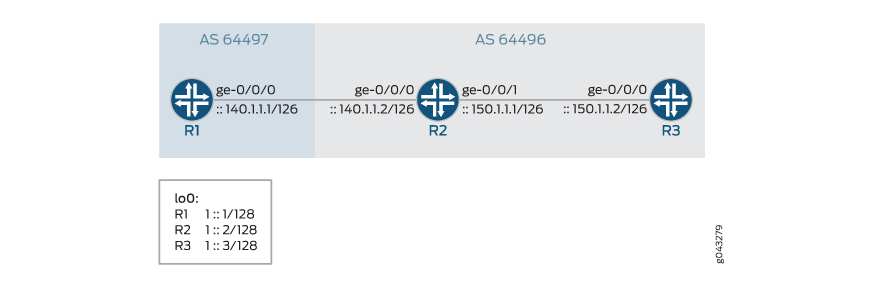 MP-BGP を有効にするためには、ステートfamily inetメントを含めることで、ユニキャスト IPv4 以外のアドレスファミリーのネットワーク層到達可能性情報(NLRI)を伝送するように、BGP を設定する必要があります。