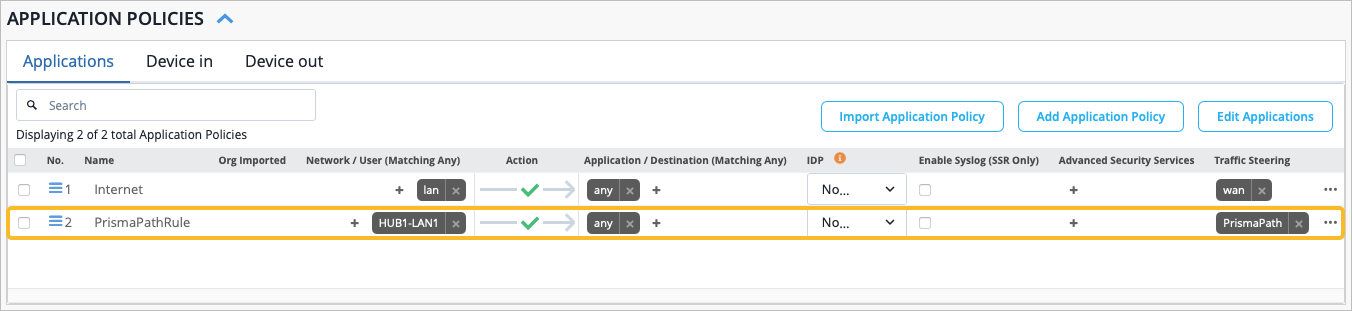 トラフィックステアリングとアプリケーションポリシーを設定する