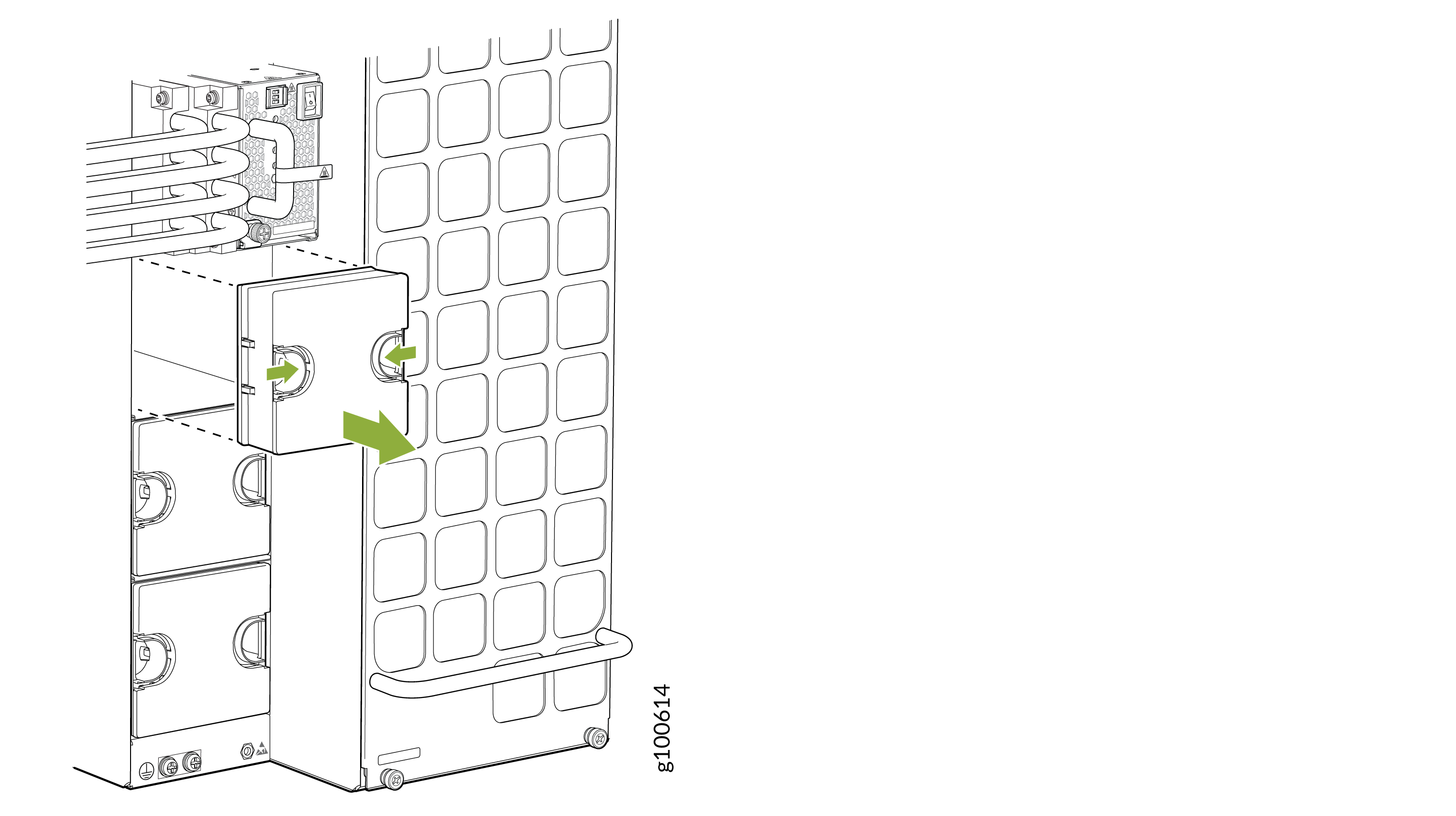 조임 나사를 돌려 전원 공급장치의 전면판에서 분리하여 래치를 분리합니다.
