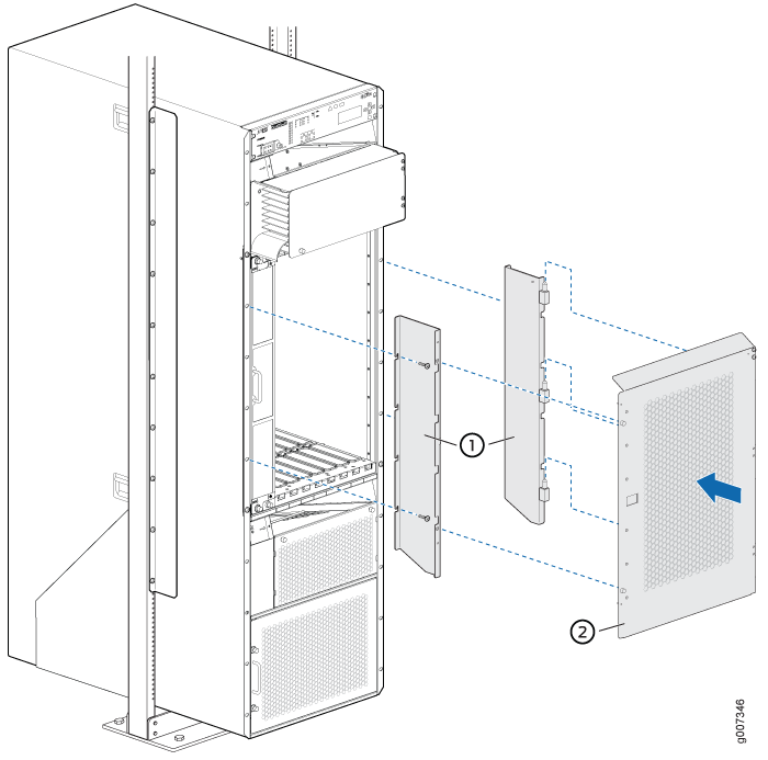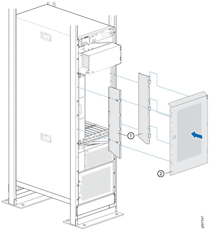 4 포스트 랙의 PTX5000에 현관문을 설치하려면( 그림 1 참조)