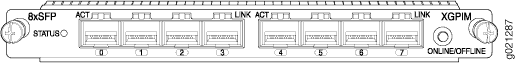 8포트 기가비트 이더넷 소형 폼 팩터 플러그형 XPIM(SFP XPIM)에는 각 포트에 대해 2개의 LINK 및 ACT가 있습니다. 각 XPIM에는 XPIM의 상태를 나타내는 STATUS LED가 있습니다. LED는 표 3에 나열되어 있습니다. 자세한 내용은 8포트 기가비트 이더넷 SFP XPIM 개요를 참조하십시오.