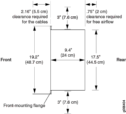 Para que el personal de servicio retire e instale componentes de hardware, permita al menos 2,16 pulgadas. (5,5 cm) delante del enrutador.