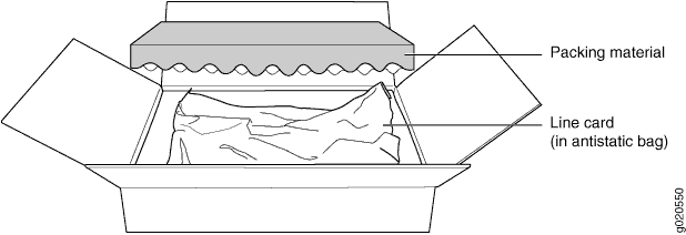 Figura 3: Desempaquetado de una tarjeta de línea utilizada en un conmutador Unpacking a Line Card Used in an EX9200 Switch EX9200