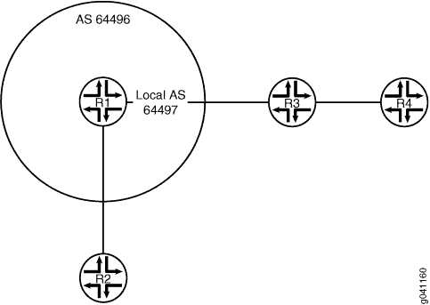 local-asinstrucciones configuradas en el dispositivo forman parte de un único dominio AS. El mecanismo de detección de bucles de la ruta del AS se basa en buscar un AS coincidente presente en el dominio.