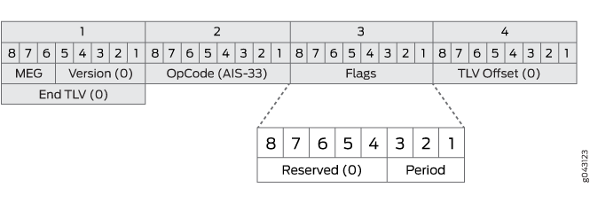 Transmisión AIS: un MEP al detectar una condición de defecto transmite PDU ETH-AIS en una dirección opuesta a sus pares MEP. La transmisión de PDU de ETH-AIS se basa en un período de transmisión de ETH-AIS configurado. Se recomienda un período de transmisión ETH-AIS de 1 segundo. La primera PDU ETH-AIS debe transmitirse inmediatamente después de la detección de una condición de defecto.
