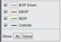 Seleccione el menú Subvistas > protocolos del mapa BGP. Las opciones son las siguientes: