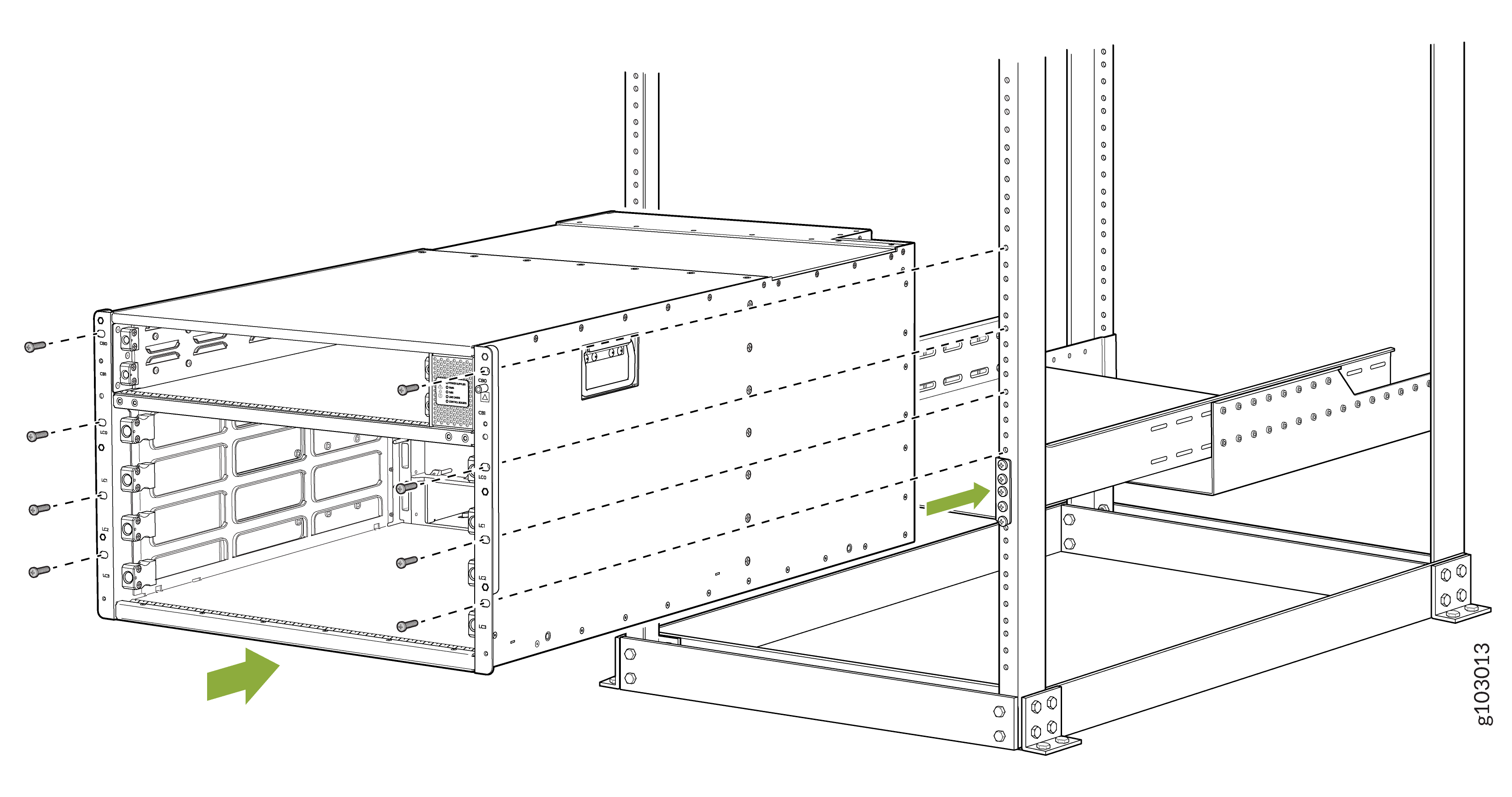 You can mount a Juniper Networks MX10004 router in a four-post closed-frame rack or a