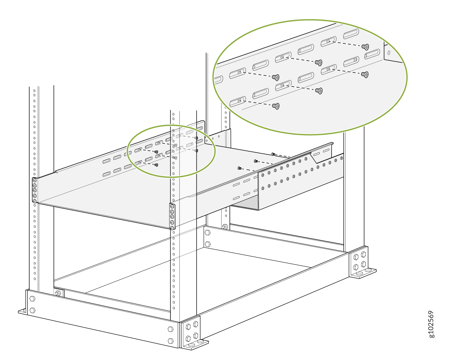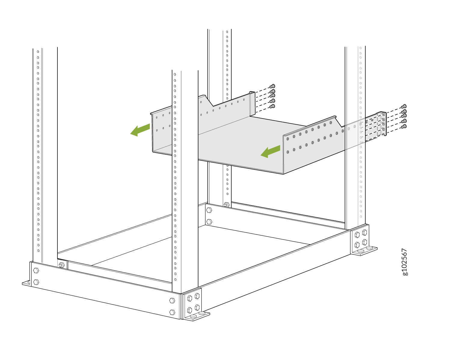 From the rear of the rack, slide the rear mounting tray into the rear posts of the rack