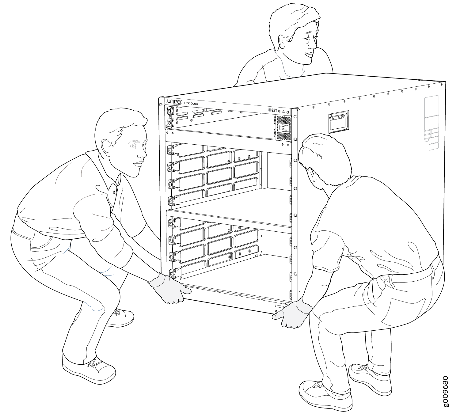 You can mount an MX10008 manually or by using a mechanical lift. Because of the router's