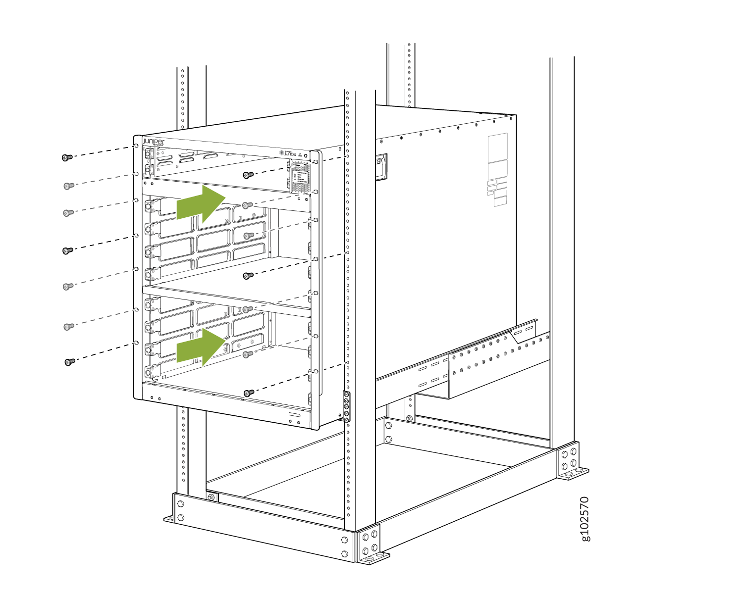 You can mount a Juniper Networks MX10008 router in a four-post closed-frame rack or a
