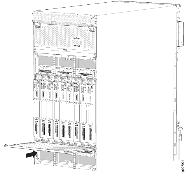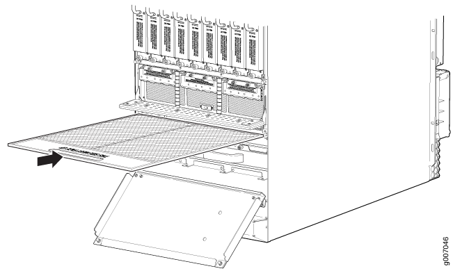 - Open the fan tray and air filter access door, located at the bottom of the chassis.