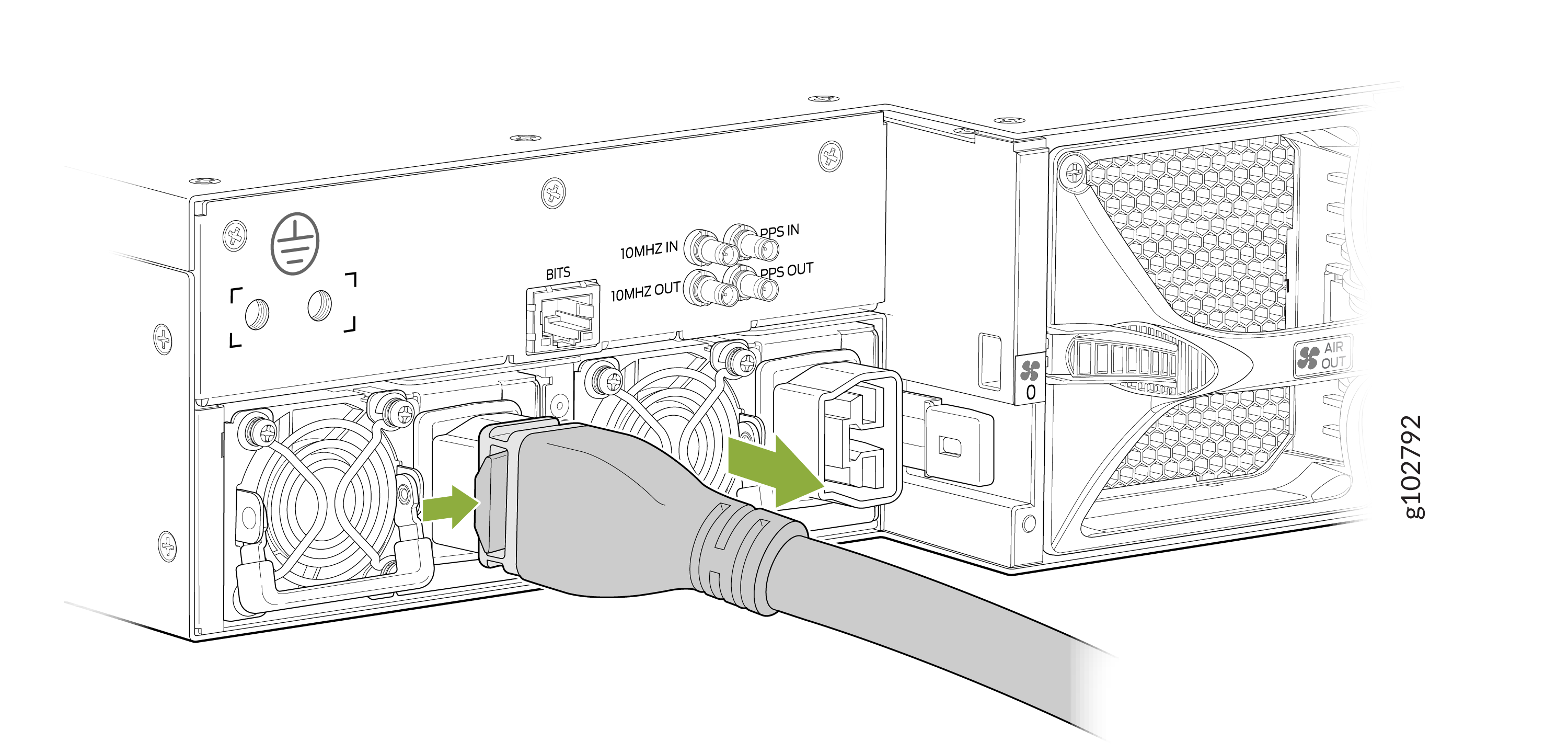 We ship the router with 1+1 redundant PSUs preinstalled in the rear panel. The PSUs are hot-removable and hot-insertable field-replaceable units (FRUs): You can remove and replace them without powering off the router or disrupting router functions.