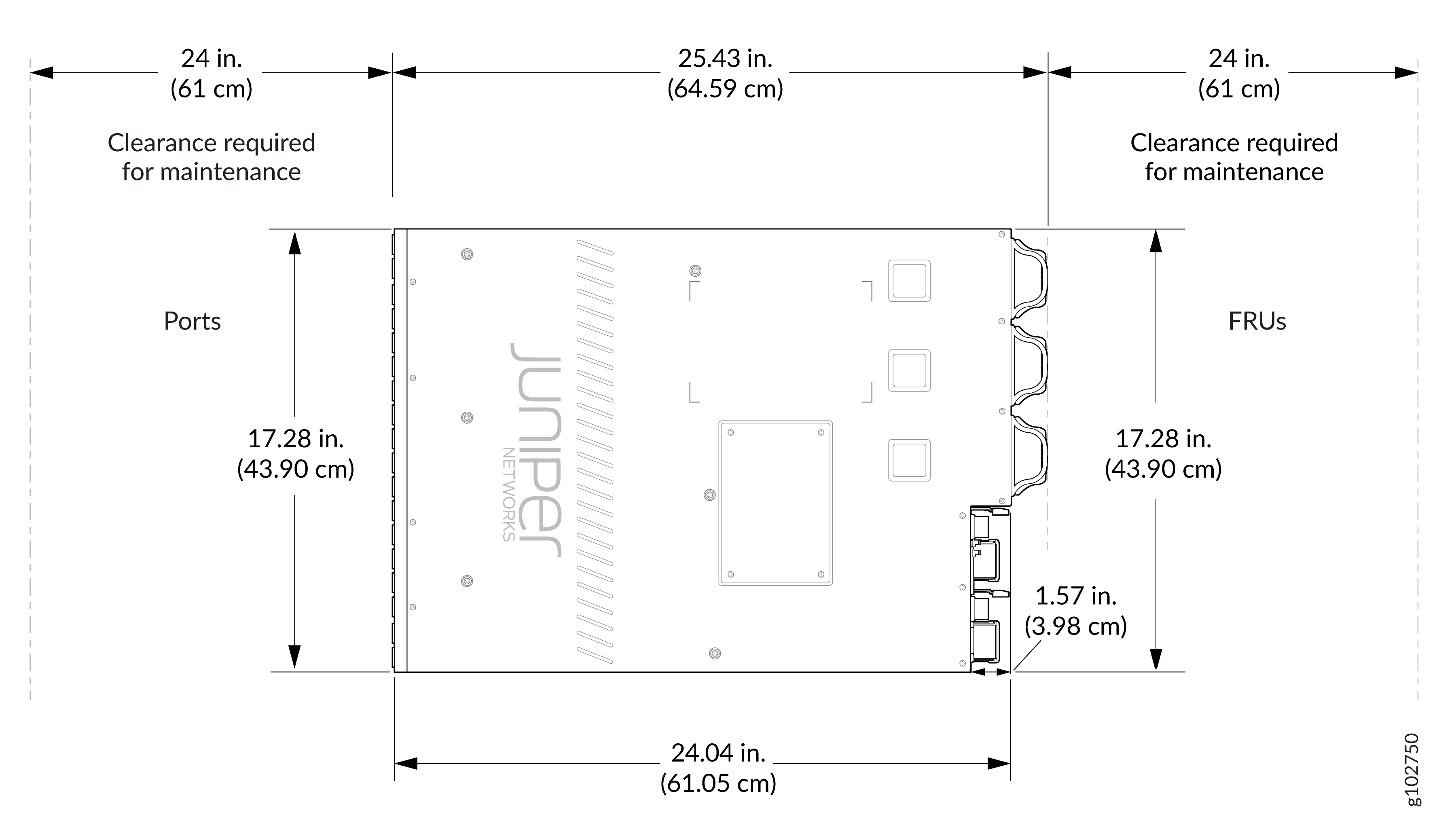 Figure 1: Clearance Requirements for Airflow and Hardware Maintenance for PTX10002-36QDD Router