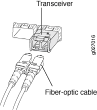 The transceivers that are supported on MX Series and PTX Series devices use fiber-optic cables and connectors. The type of connector and the type of fiber depends on the transceiver type.