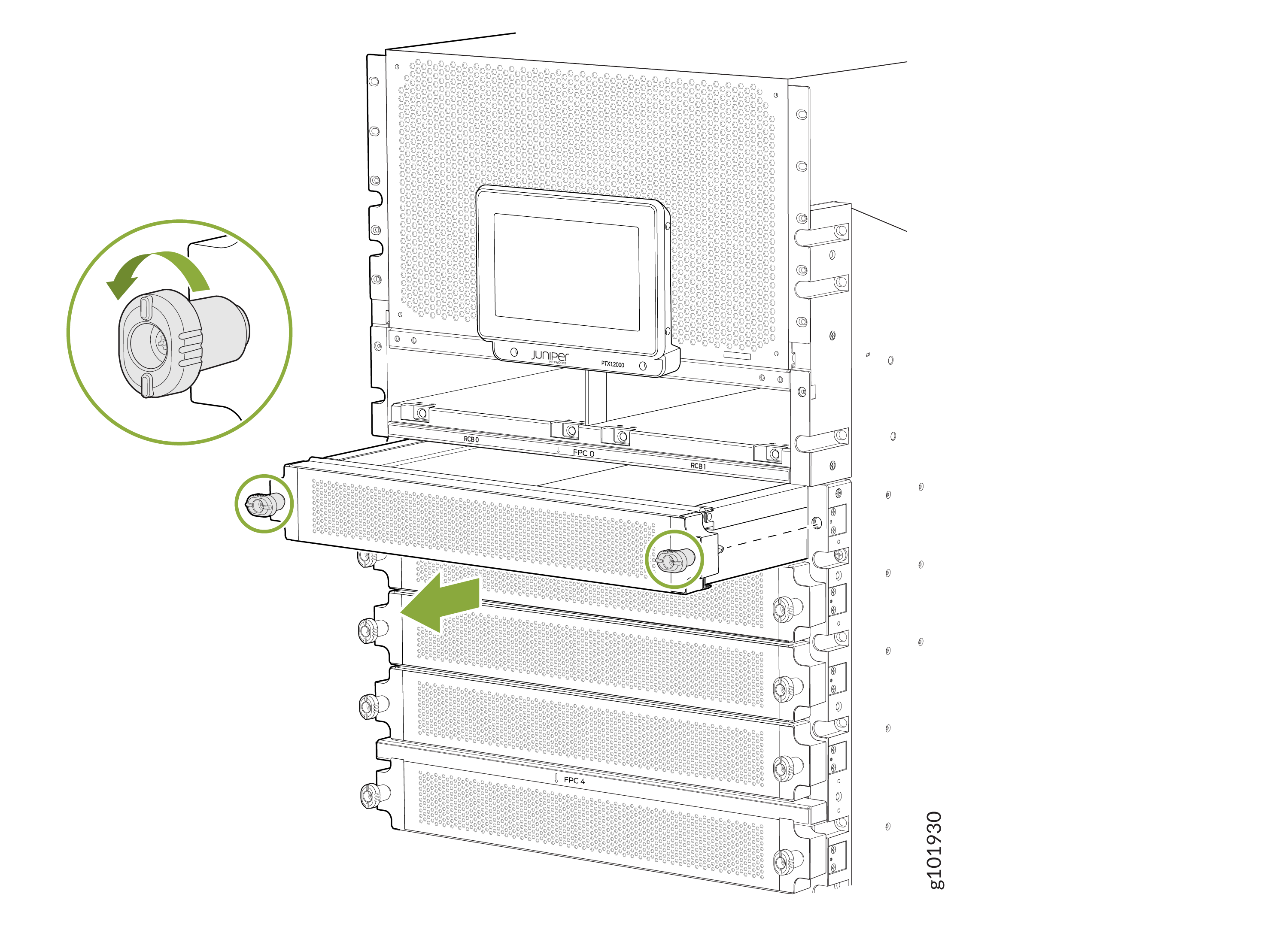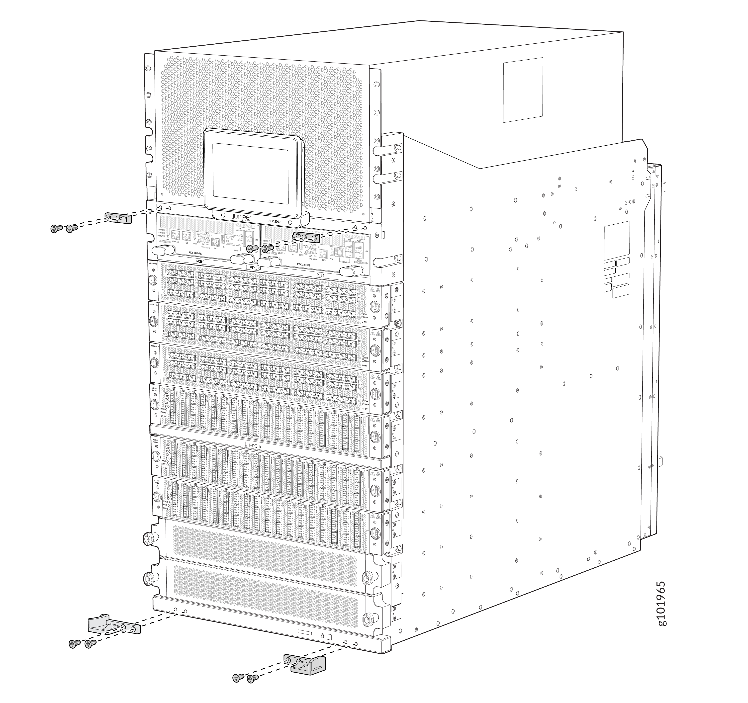 If Routing and Control Boards (RCBs), FPCs, power supply modules (PSMs), fan trays, or Switch Interface Boards (SIBs) are installed in the chassis, remove them. See: