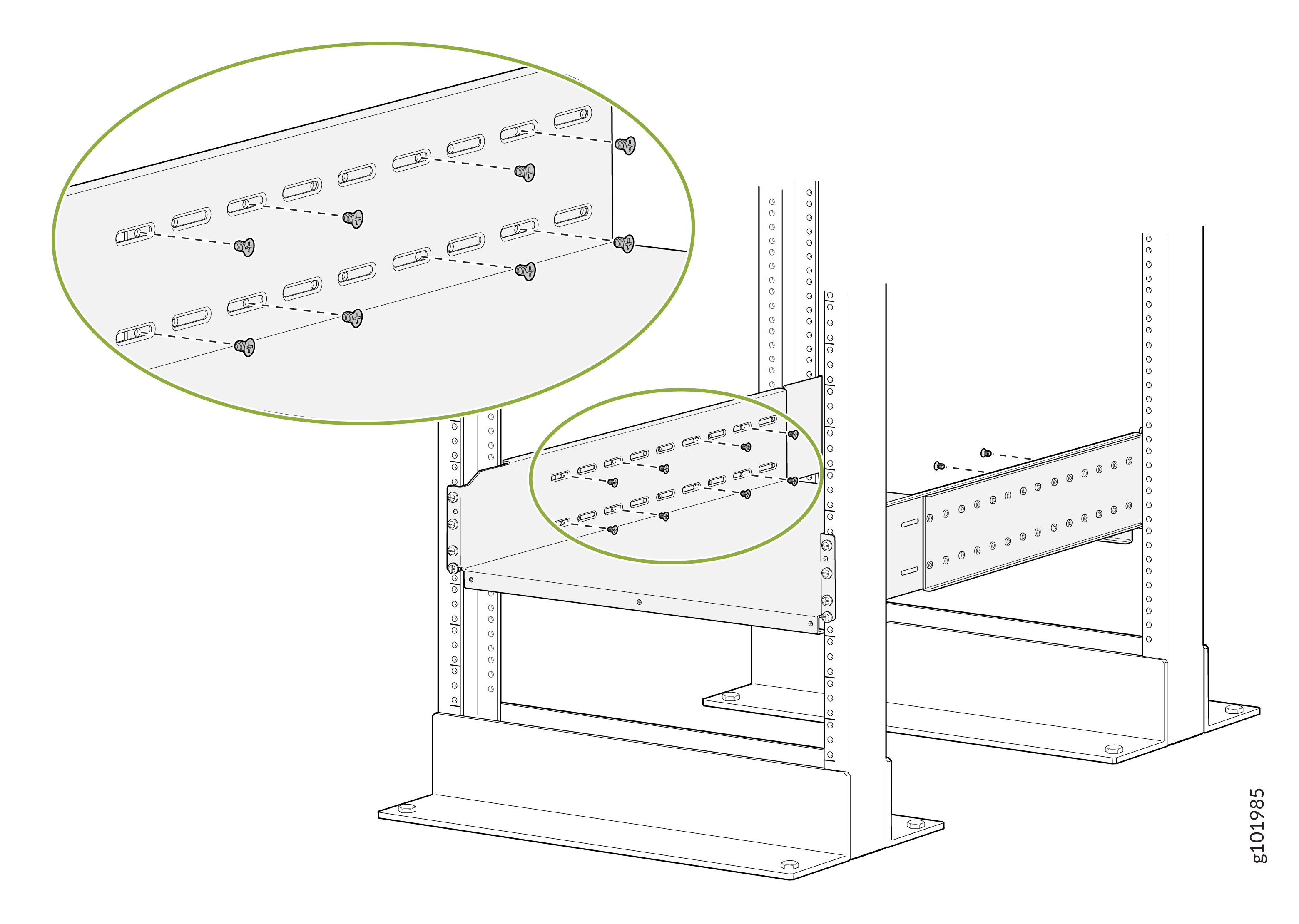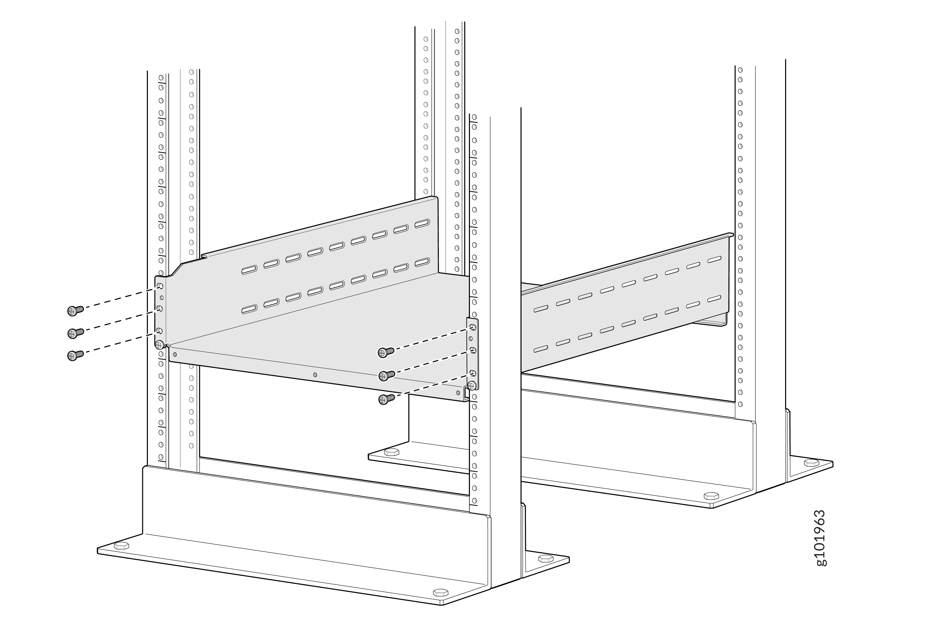 If you are installing more than one router on a rack, install the first router at the bottom of the rack.