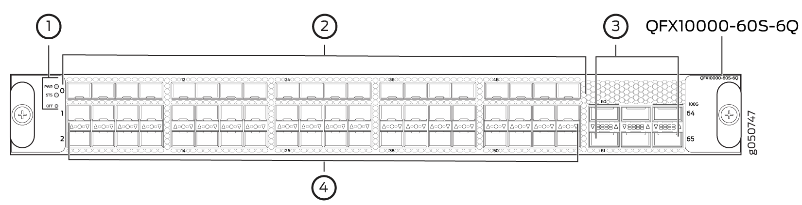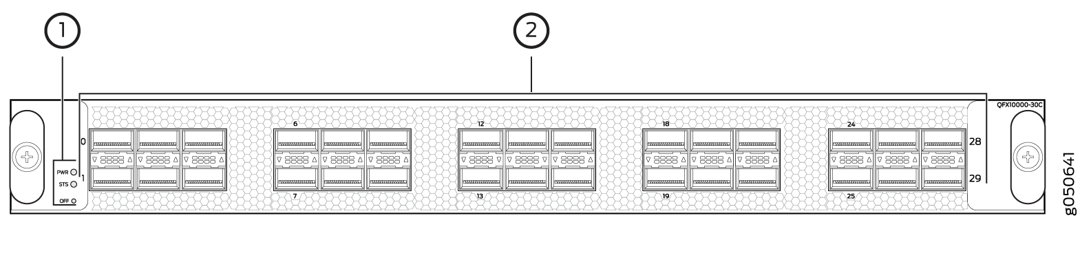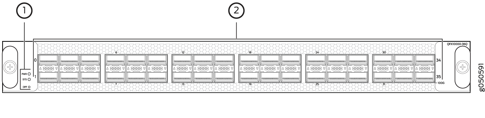 The offline/online button is recessed below the faceplate directly below the status (STS) LED. You can take any QFX10000 offline or online by using either of these two methods: