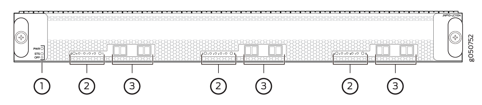 All QFX10000 line cards have three bi-colored LEDs (see Figure 22).