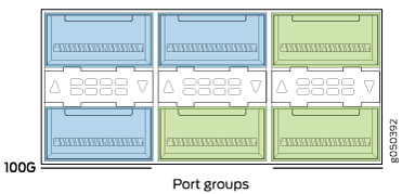 Unlike the QFX10000-36C line card, the QFX10000-30C-M line card does not have port groups; instead, port behavior is tied to the ASIC associated with the port. You must configure each port individually, in order to channelize a 40-Gigabit Ethernet port to 4 independent 10-Gigabit Ethernet ports. The first time a port for an associated ASIC is changed from the default configuration mode (mode D) to the channelization mode (mode A), the FPC reboots. Subsequent channelization of the ports for that ASIC does not cause the FPC to reboot. However if one of the channelized ports is changed back to the default, the FPC will again reboot. See Table 5 for the list of available ports and the associated ASIC and Figure 5 to locate the available and disabled ports.