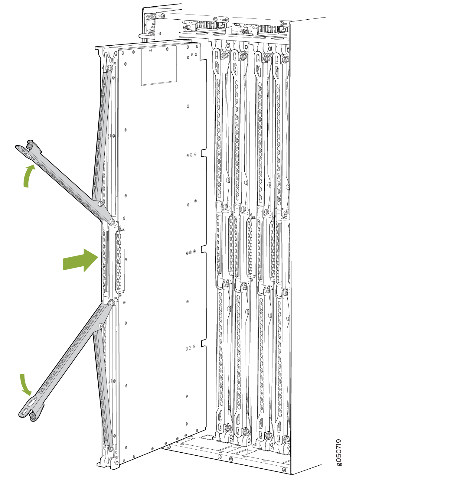 - Loosen the captive screws at the top and bottom of the