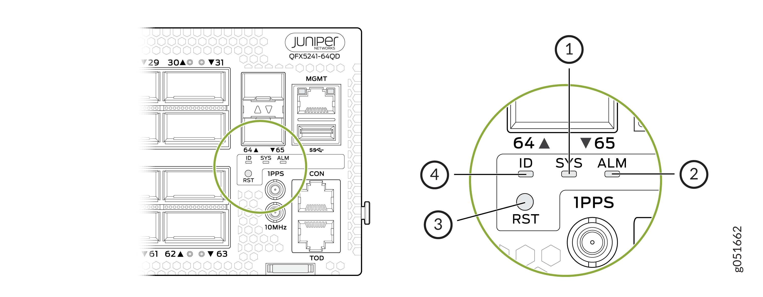 5 — Status LEDs (ID, SYS, ALM) and reset (RST) button |