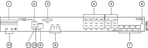1 — DC terminals | 7 — Combination Gigabit Ethernet SFP ports |