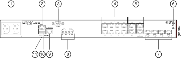 1 — AC inlets | 7 — Combination Gigabit Ethernet SFP ports |