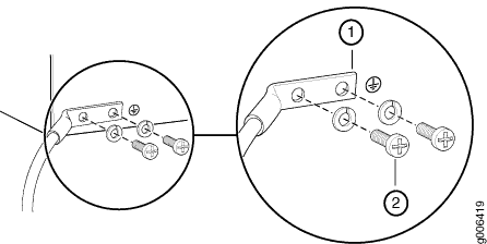 1 — Grounding lug | 2 — SAE 10-32 screw and washer |