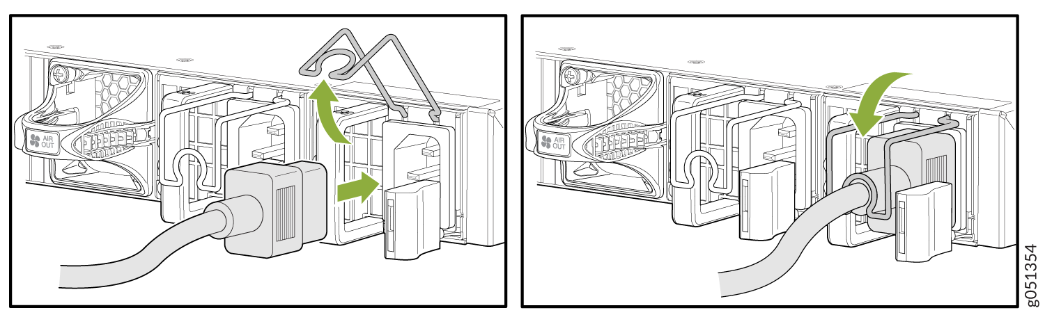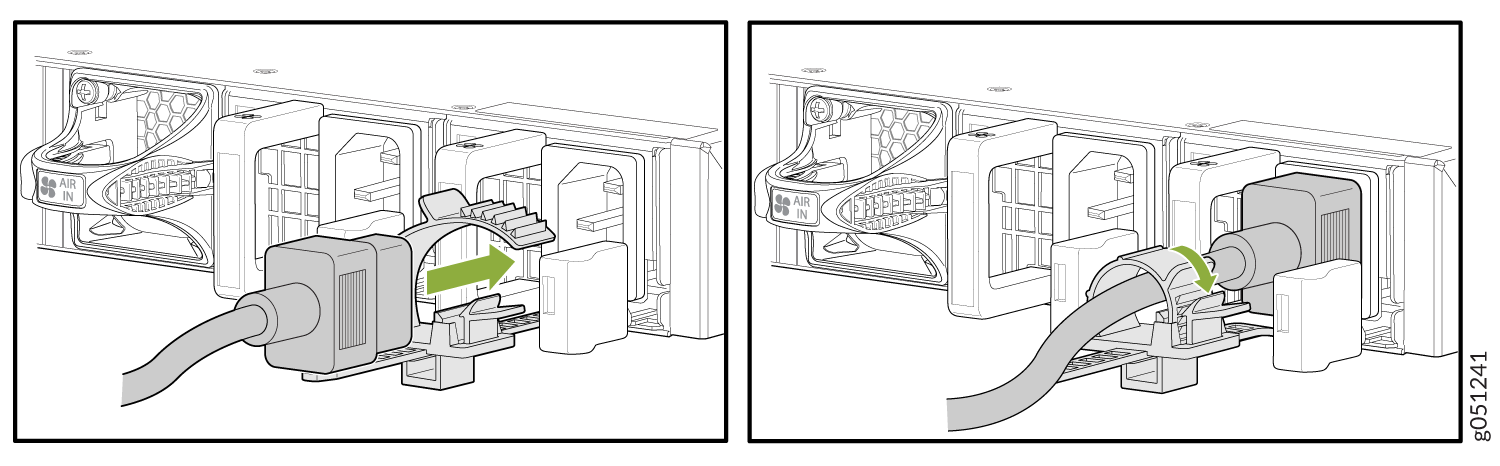 The AC-powered QFX5120-48T, QFX5120-48Y, and QFX5120-48YM switches come with two AC power supplies preinstalled on the rear panel.