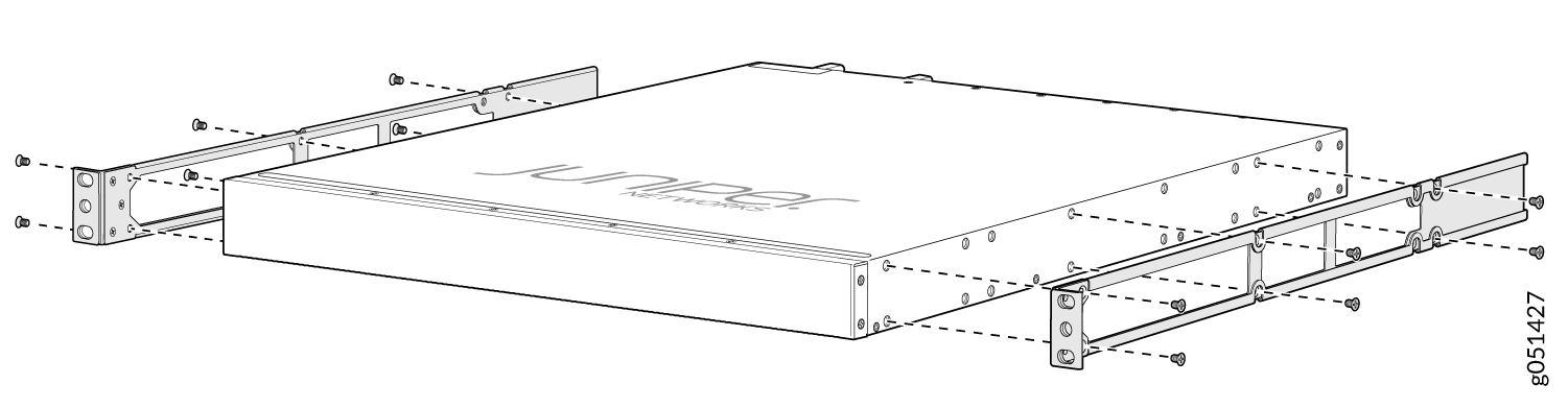 Two front mounting brackets for mounting the switch flush with the front posts of a rack