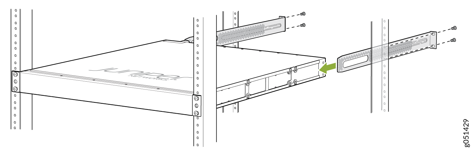 You can mount the QFX5120-48T, QFX5120-48Y, and QFX5120-48YM switches in a four-post 19-in. rack or in a cabinet that contains a four-post 19-in. rack. In this guide, we’ll walk you through how to mount the switch in a four-post rack.