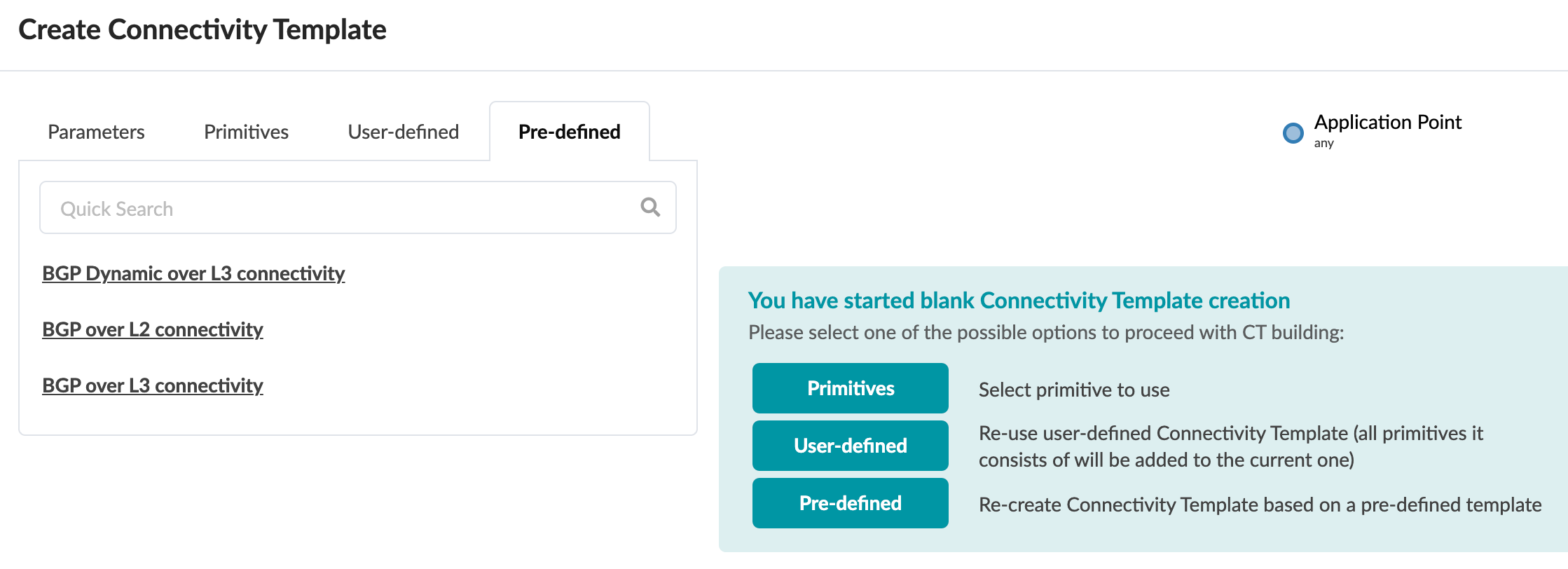 From the Pre-defined tab, you can add grouped primitives that ship with the Apstra software.