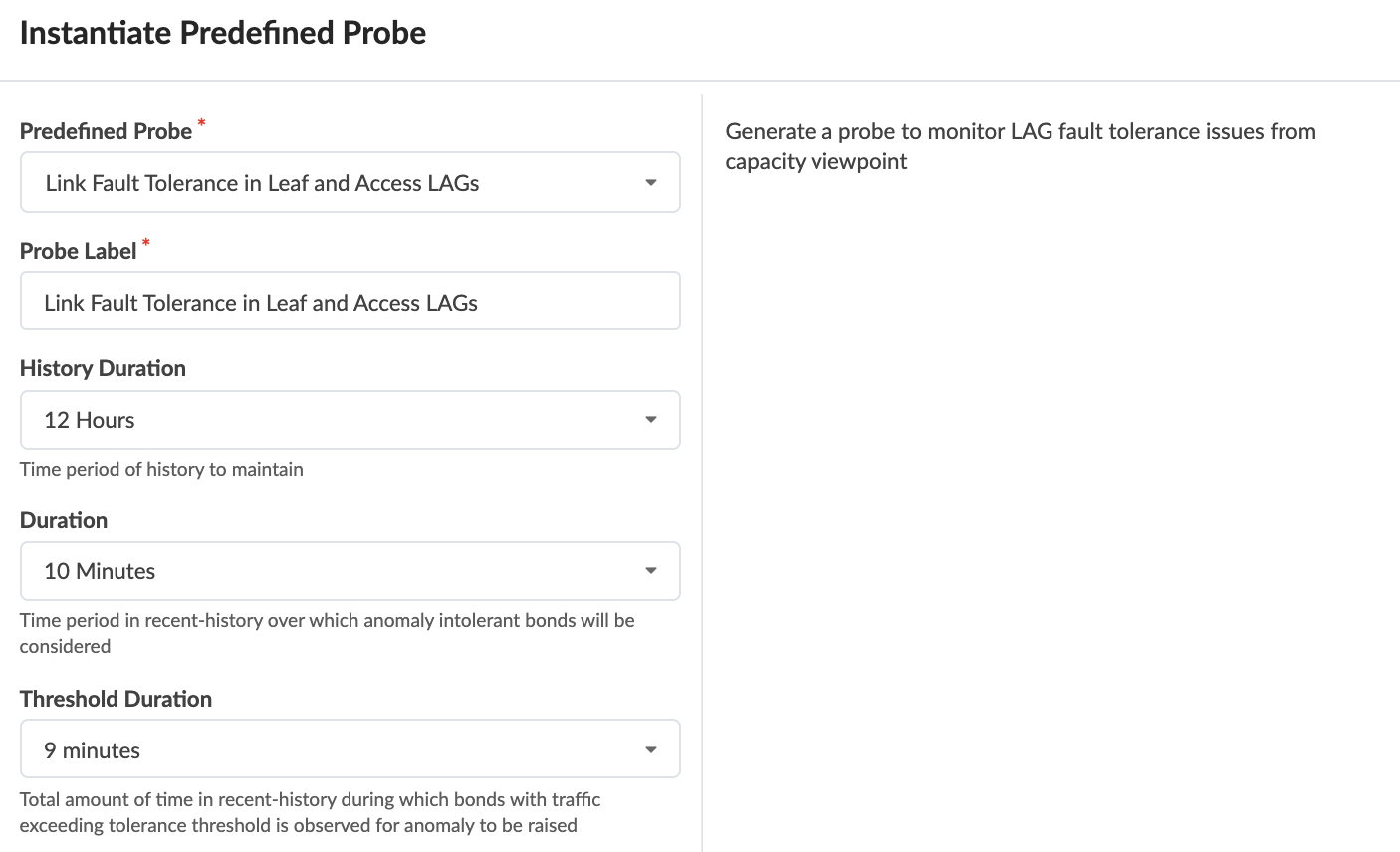 The link fault tolerance in leaf and access LAG probe monitors LAG fault tolerance issues from a capacity viewpoint.