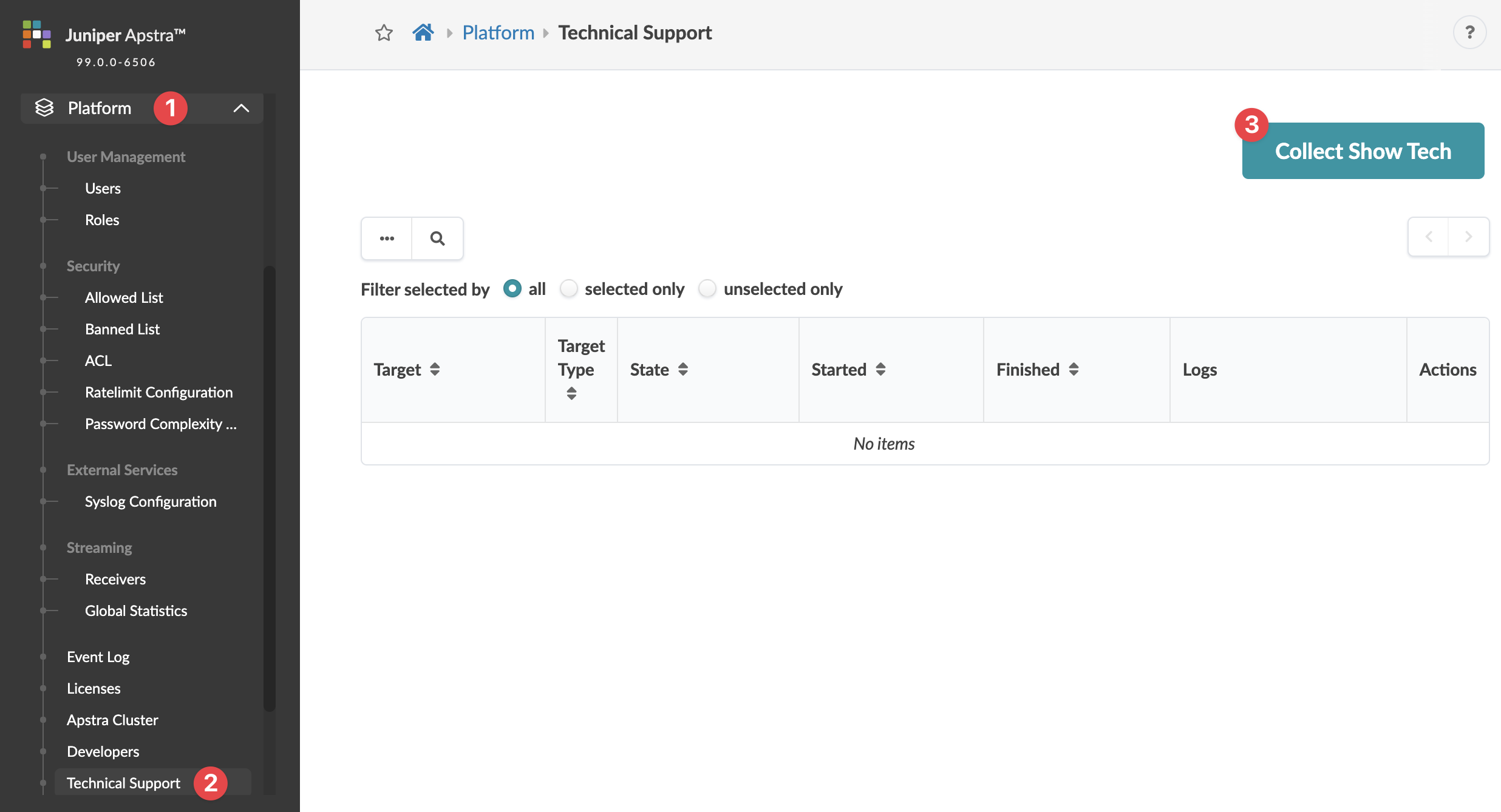 controller, from the left navigation menu, navigate to Platform > Apstra